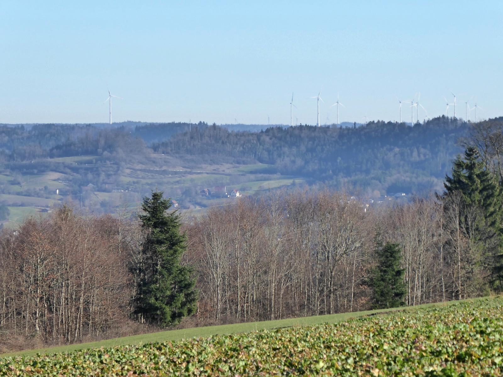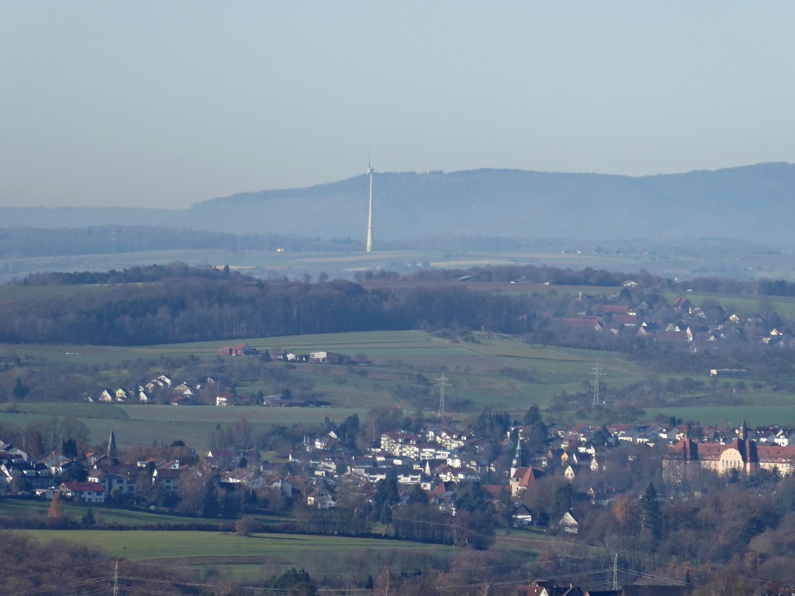 Das erste Windrad in unserer Gegend weit weg im Tal.
