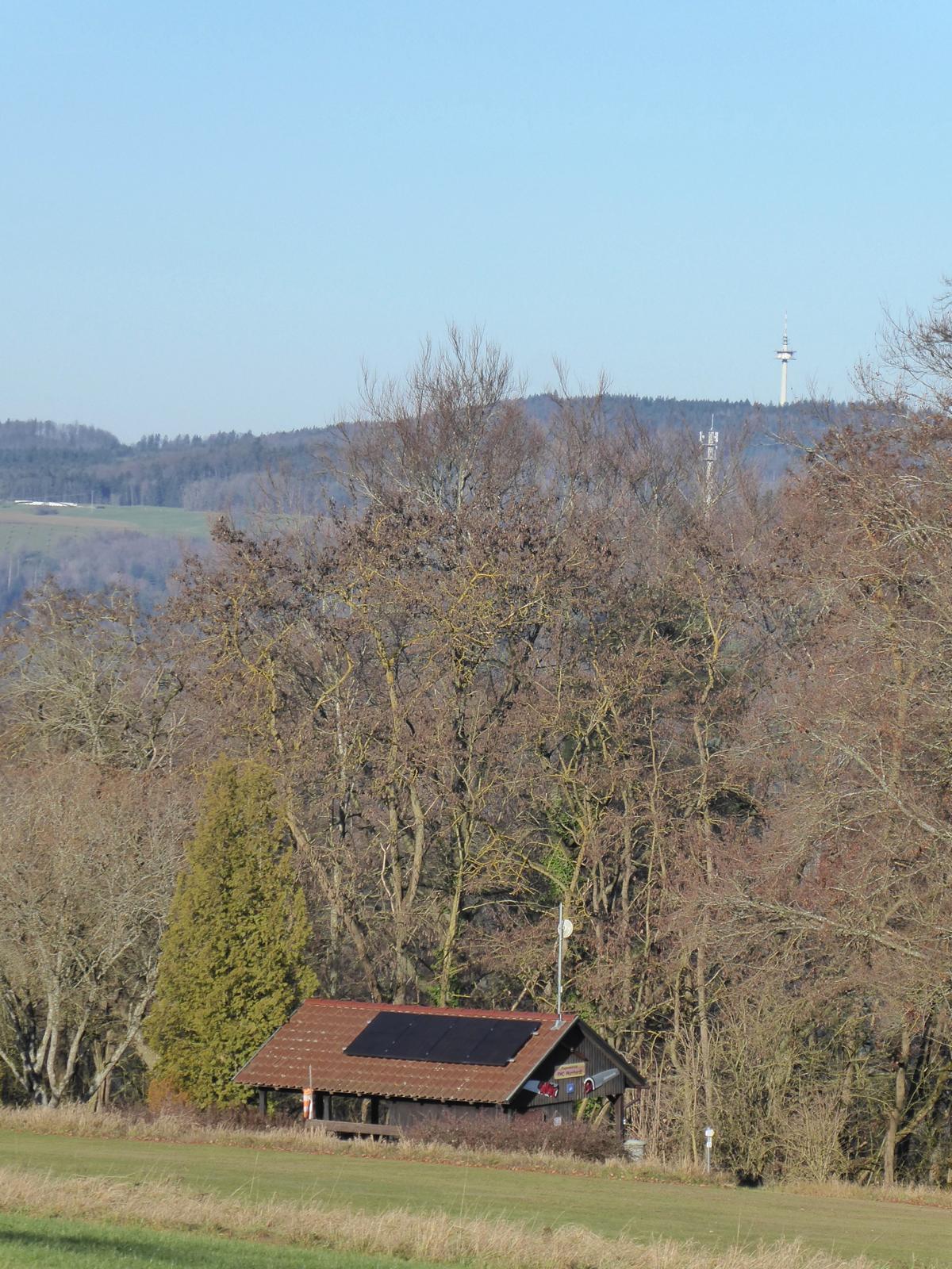 Der alte Antennenmessturm bei Allmersbach im Tag. Auf der Plattform hatte ich mal gearbeitet.