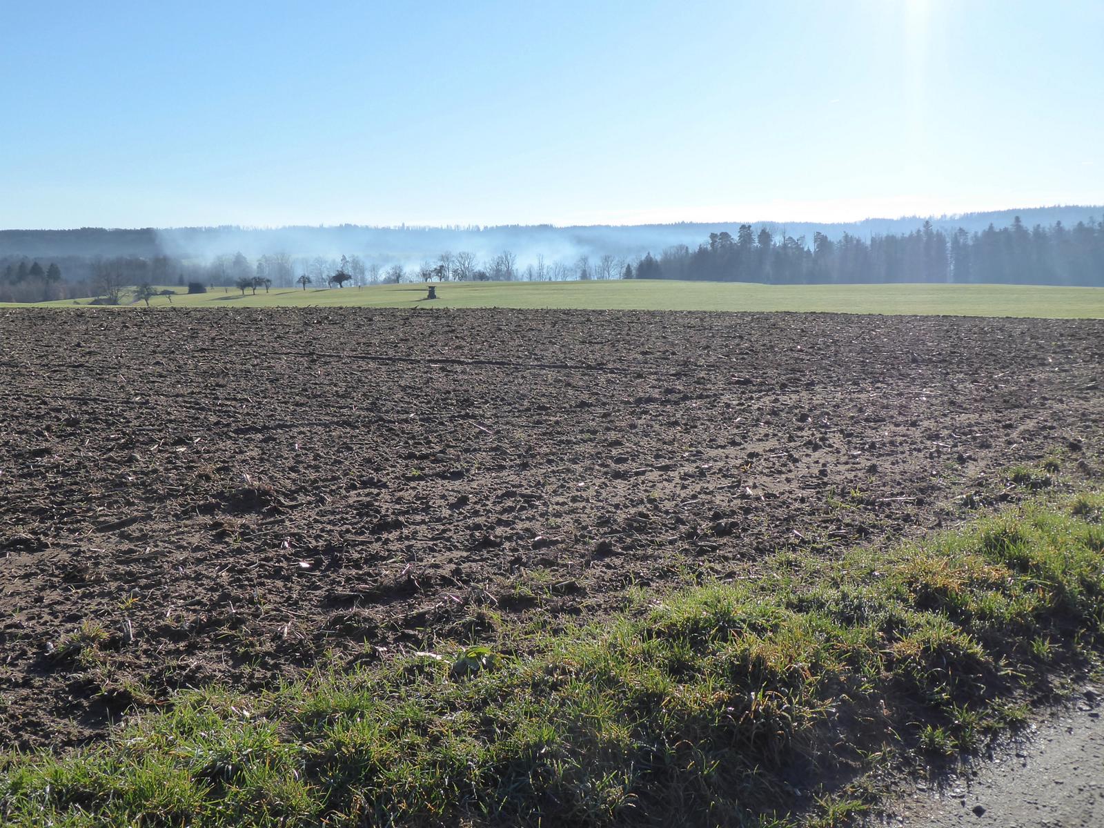 Acker auf der Rodungsinsel mit Blick über das Murrtal.