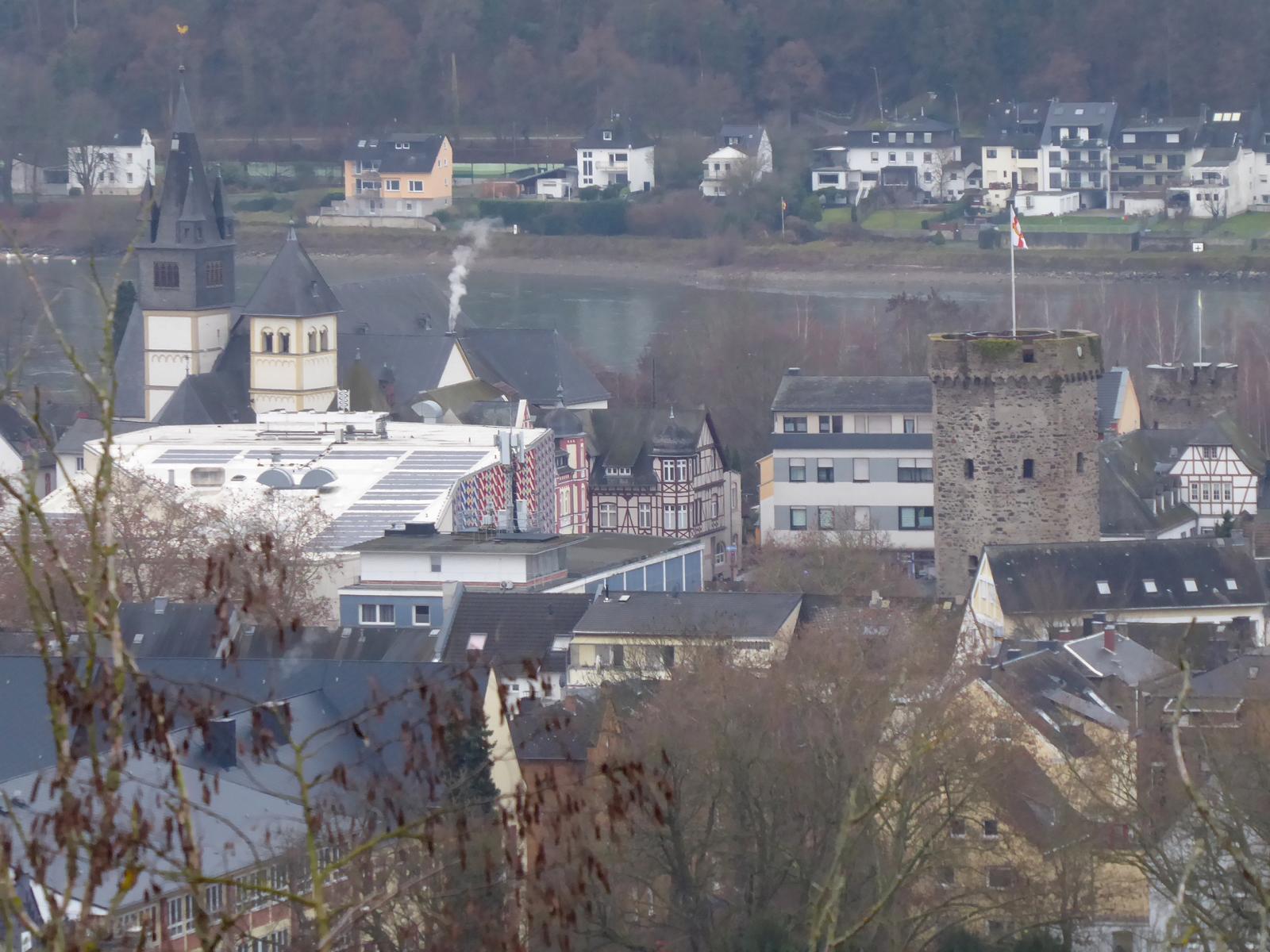 Blick über Lahnstein zum Rhein.