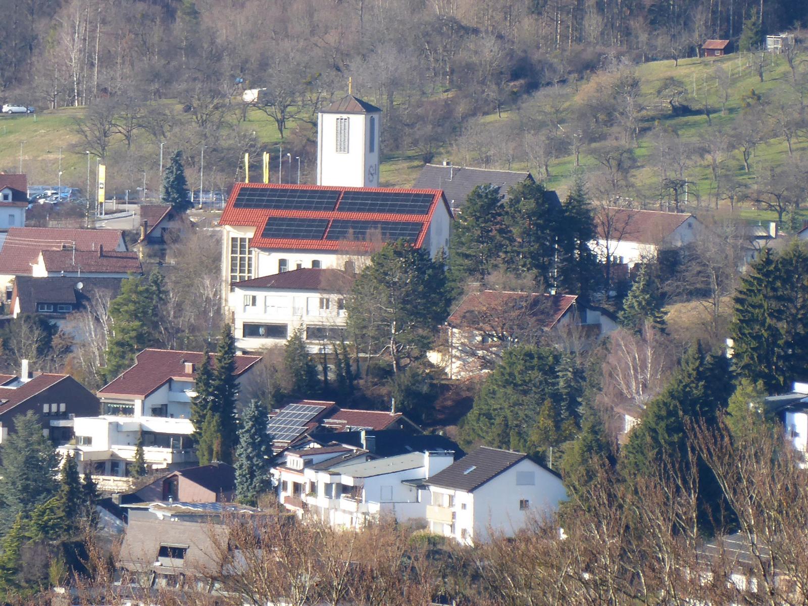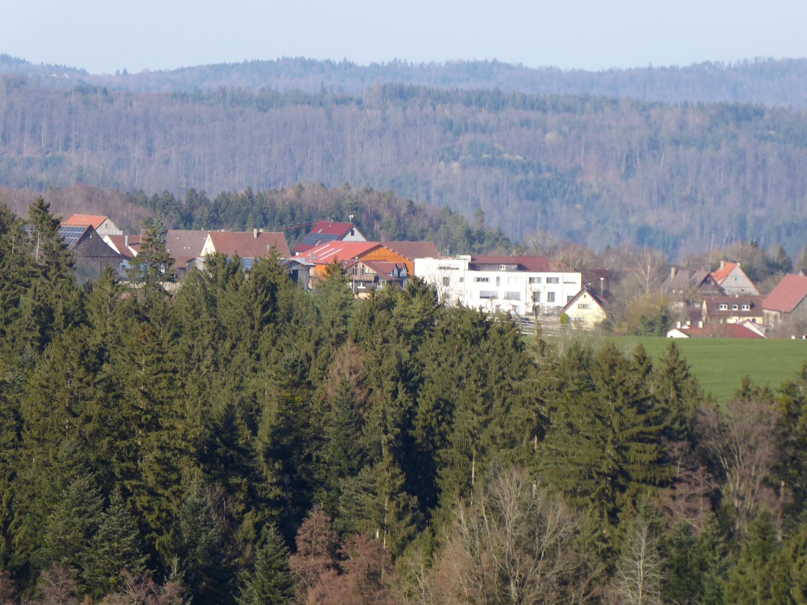 Murrhardt-Mettelberg mit dem weiß leuchtenden Pflegeheim