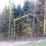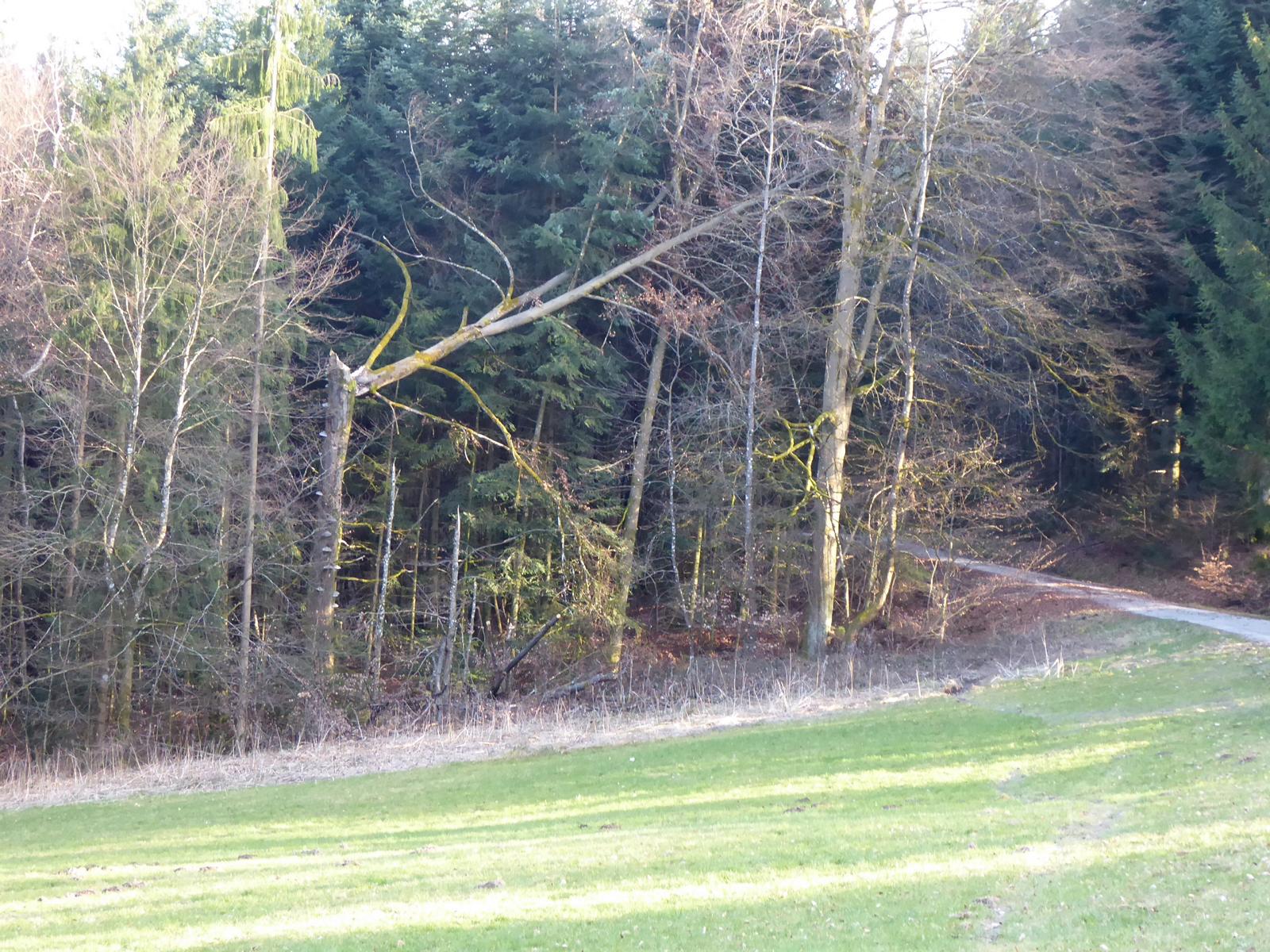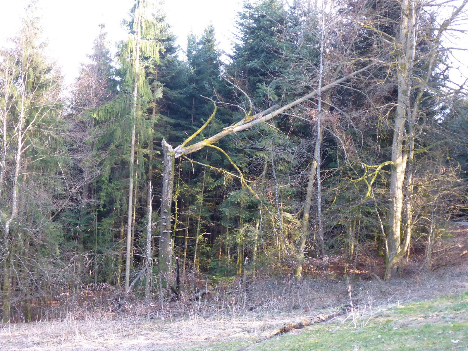 Ein auf halber Höhe vom Sturm geknickter Baumstamm