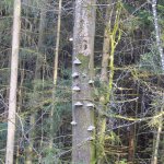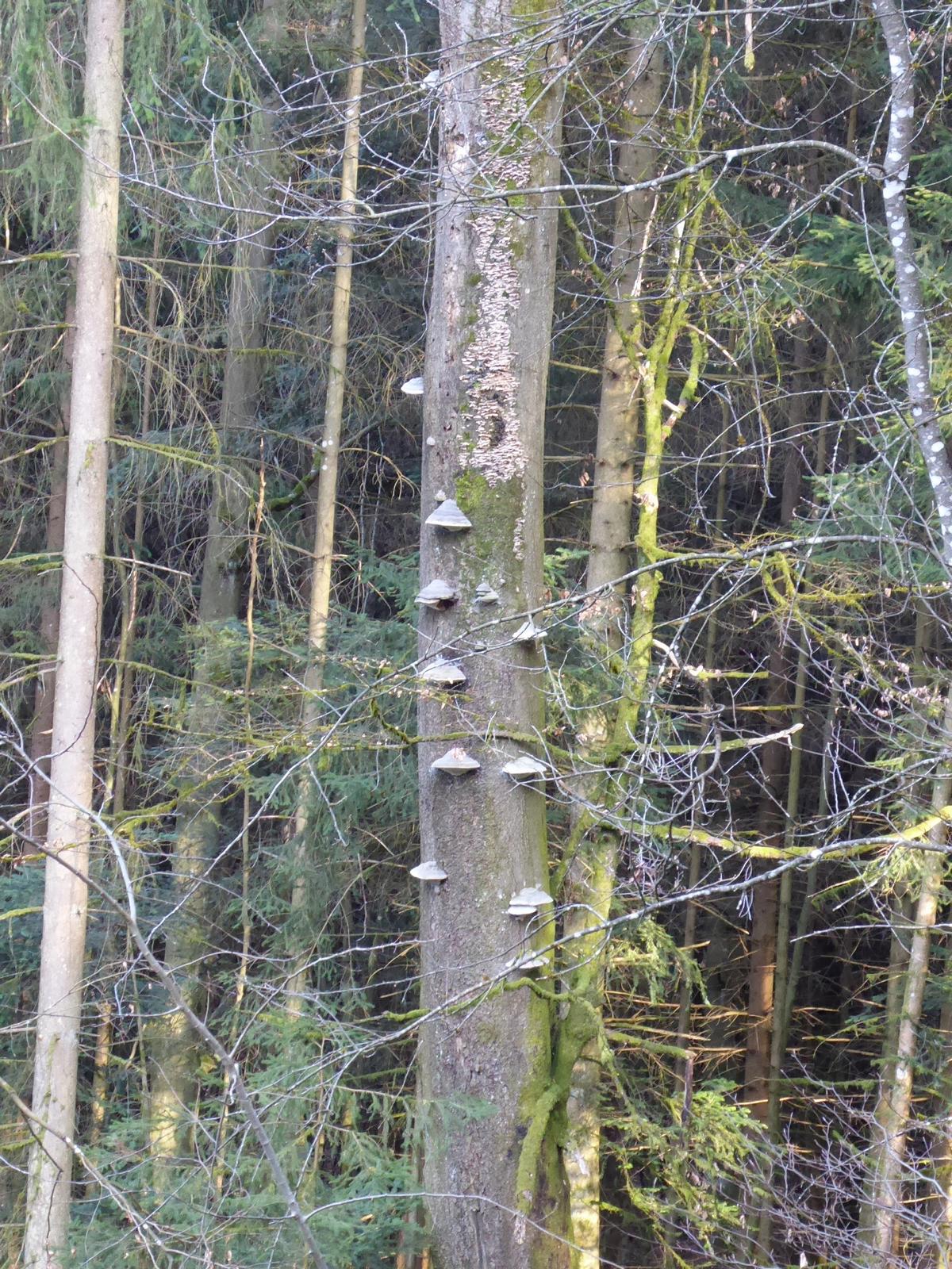 Unten am Stamm wachsen Pilze wie Treppenstufen