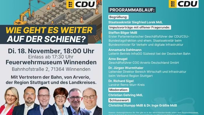 Auch die jüngsten Äußerungen von CDU-Mandatsträgern zeugen nicht von geänderter Politik: Das Verbrenner-Aus der EU soll verschoben werden, die Kosten für Flüge gesenkt werden, die Gäubahn auf Jahre abgehängt werden (Steffen Bilger) usw. usw. Dass unser Landrat an dieser Veranstaltung teilnimmt und damit den Eindruck einer neutralen Veranstaltung erweckt, stört mich besonders.