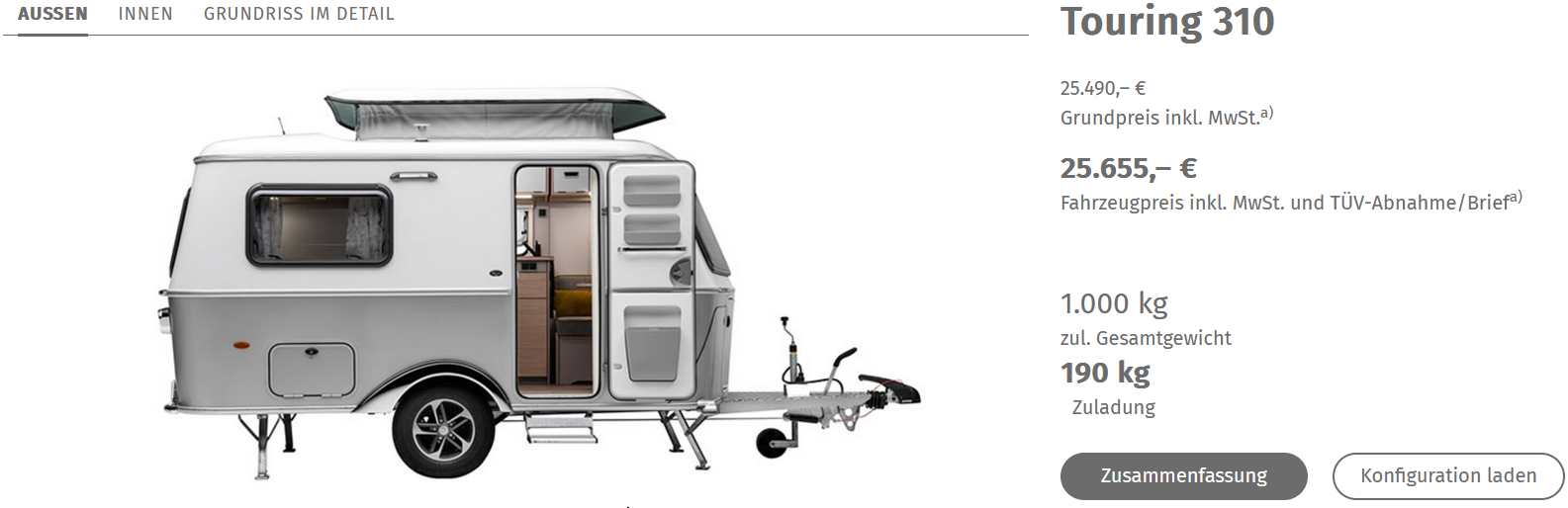 An erster Stelle steht dabei immer noch der Eriba Touring 310 (Länge 5 m). Im neuen Modell sind all die Einbauten schon serienmäßig umgesetzt, die ich nach und nach an unserem Model von 2012 ausgeführt habe. Ich müsste nicht mehr allerlei Zubehör einladen, weil diese schon fest eingebaut sind. Auf der Deichsel des neuen Modells ließen sich zwei Fahrräder mitnehmen. Für dieses Modell spricht auch, dass es gut in unseren Carport passt. Doch schon für dieses einfache Modell müsste ich rund 25.000 € zur Verfügung haben.